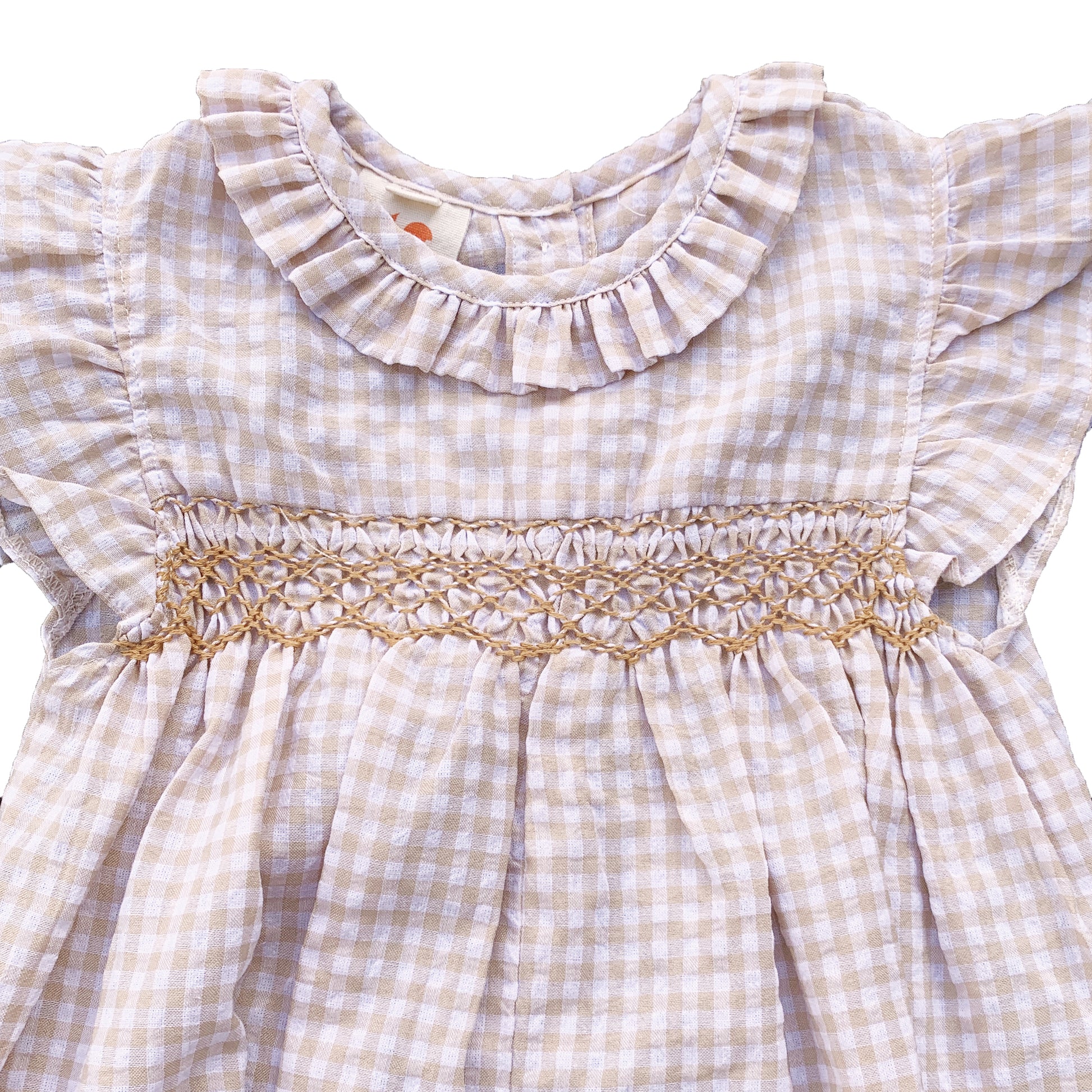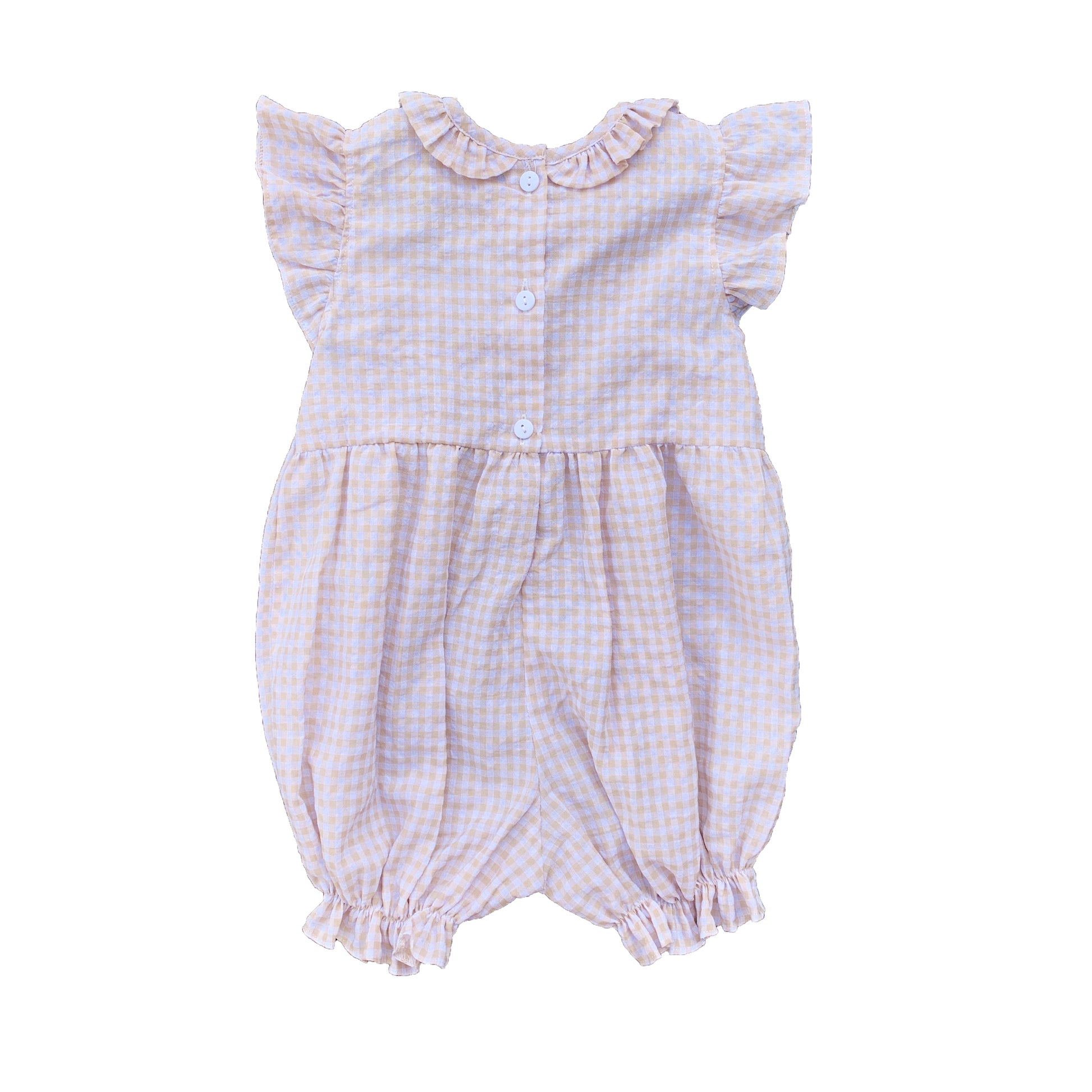 This is a lovely classic romper made of soft cotton in beige color. This is comfortable and perfect for everyday wear.