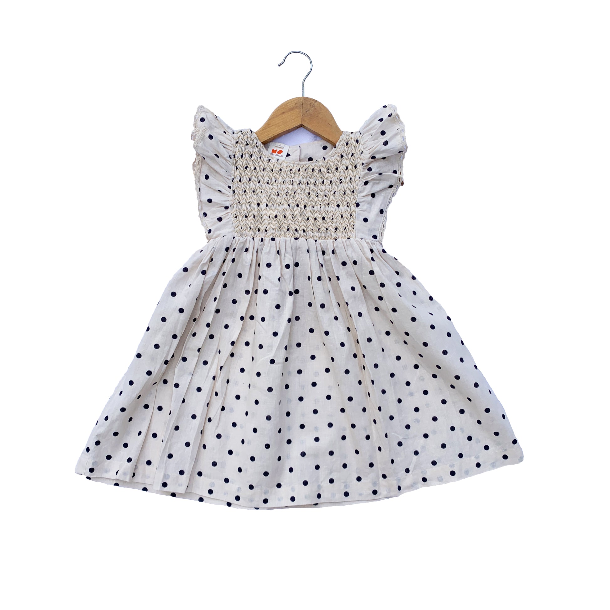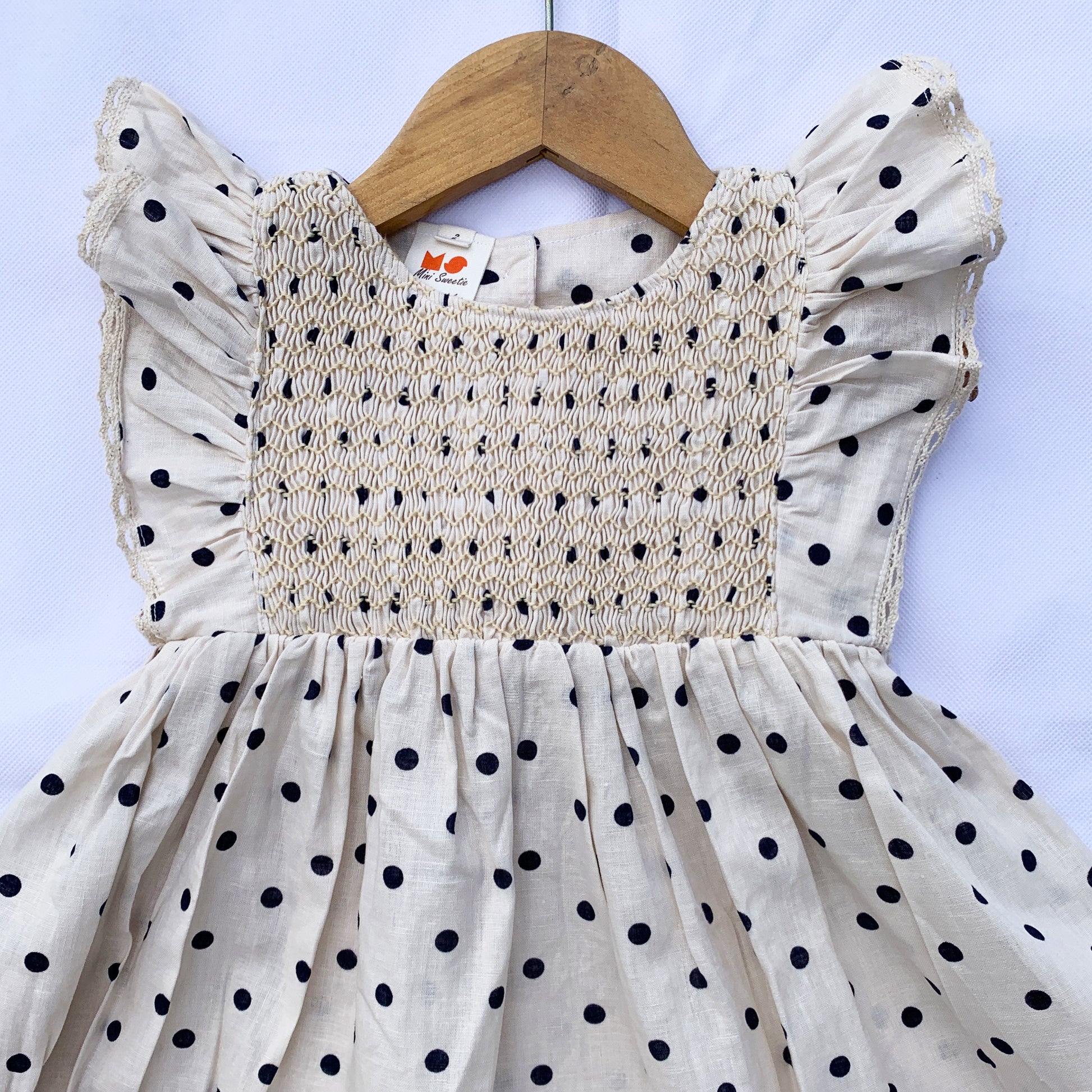 This is just a beautiful dress that made of cotton, fluttery sleeves and very details hand smocking from shoulder to waist.