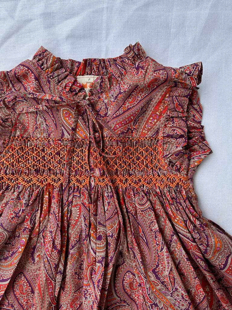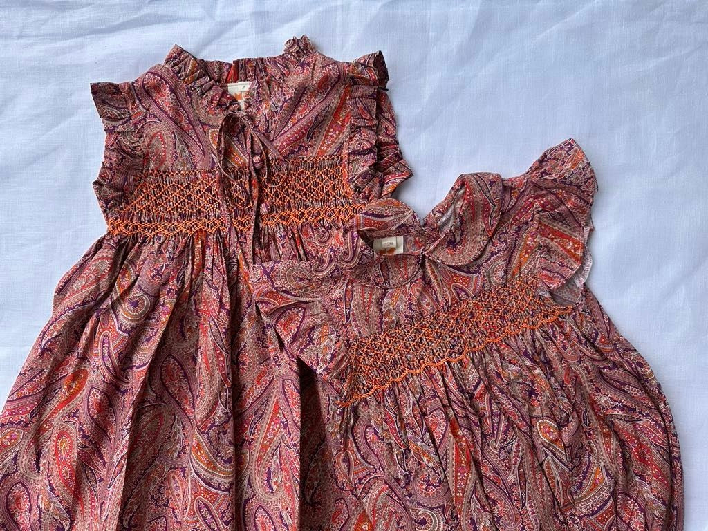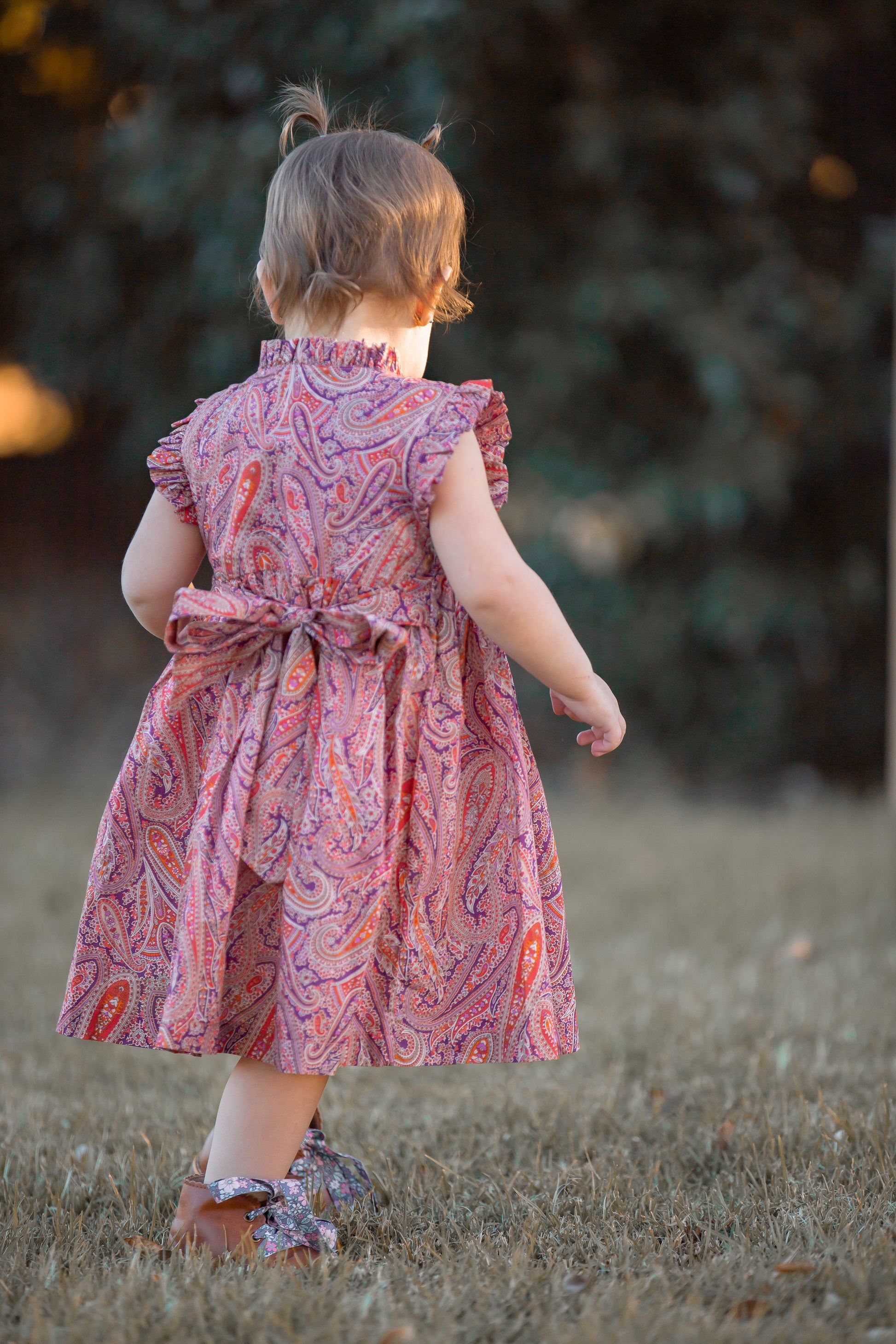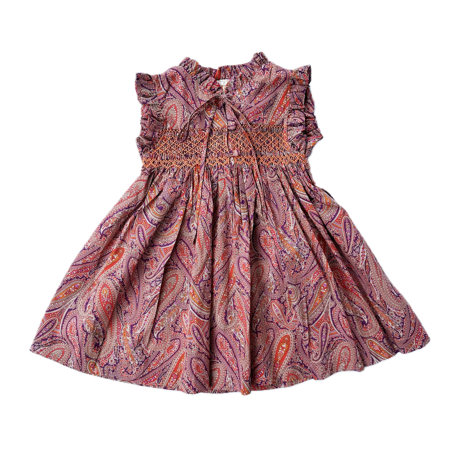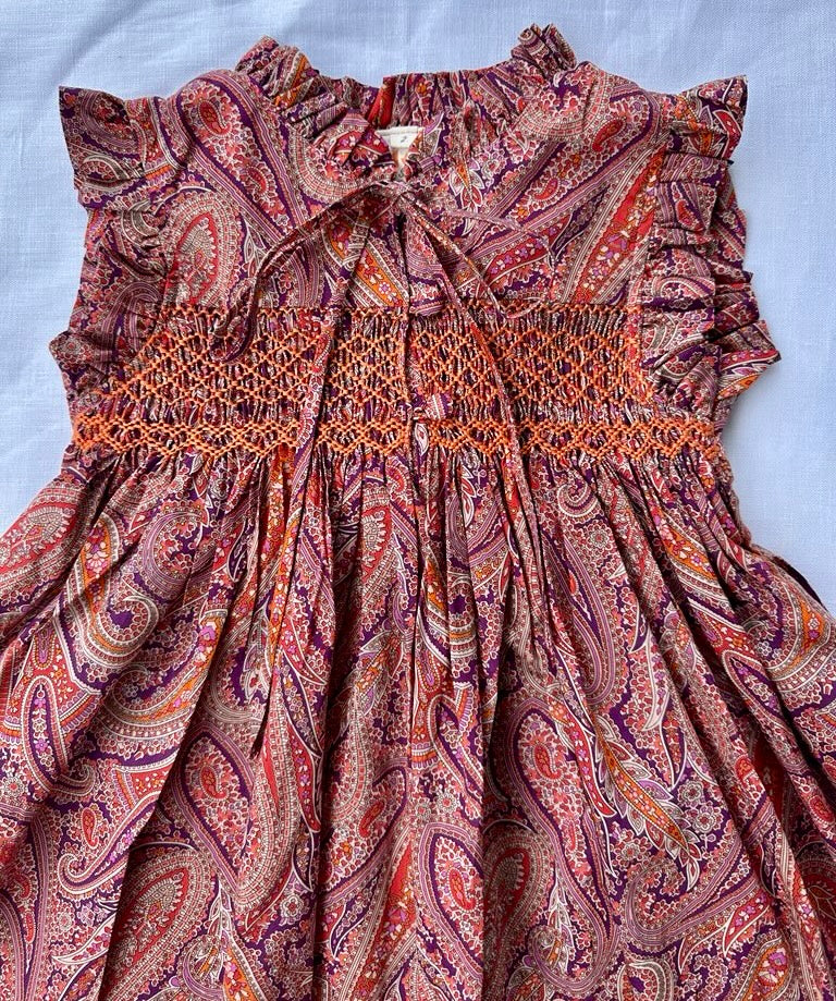Featuring a warm, glowing hue and intricately smocked details, this dress is a must have for your girl's wardrobe.