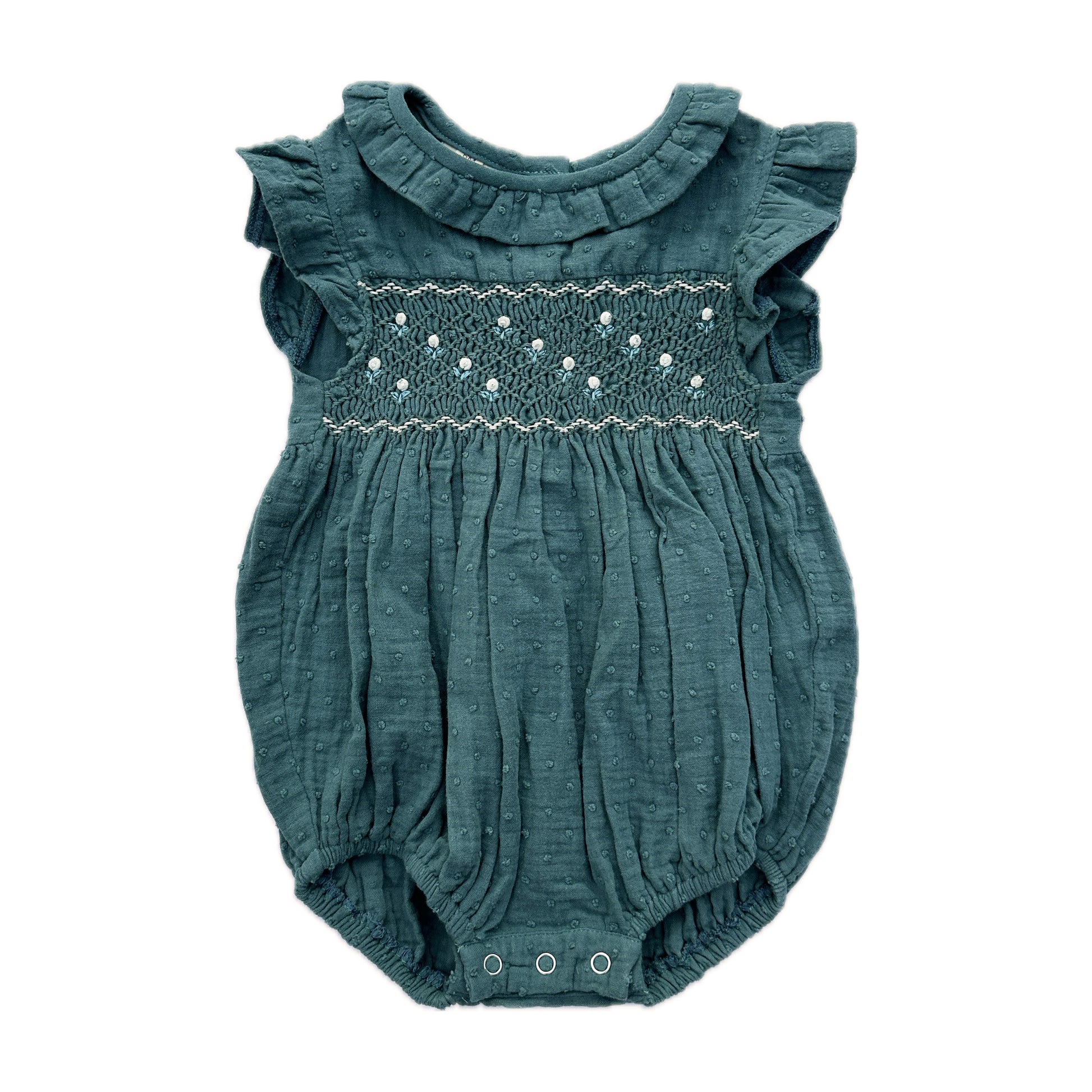 Emerald Mist Smocked Romper - Size 6m