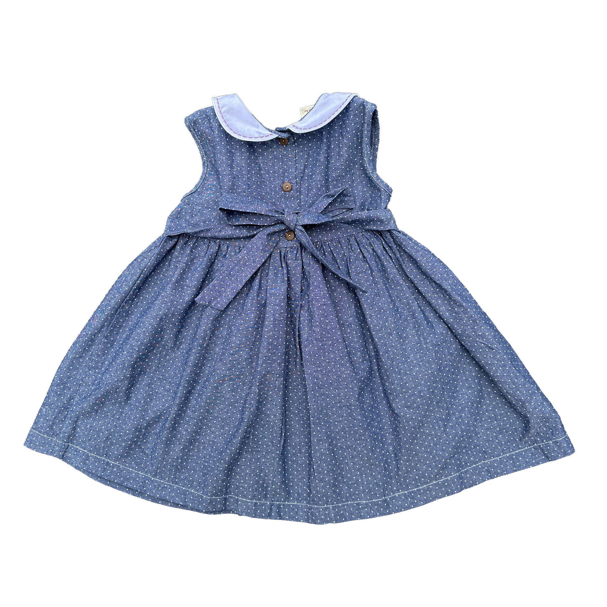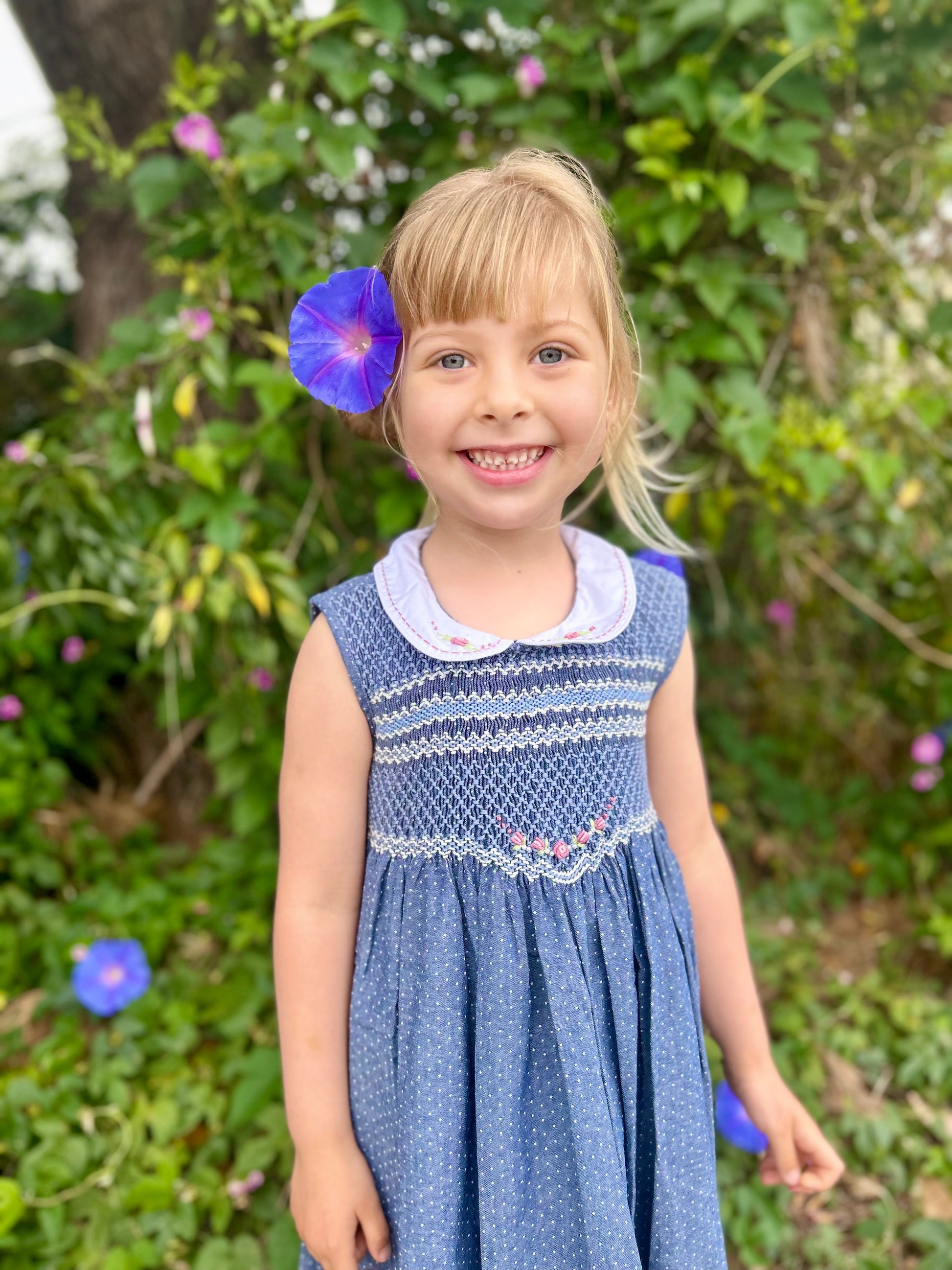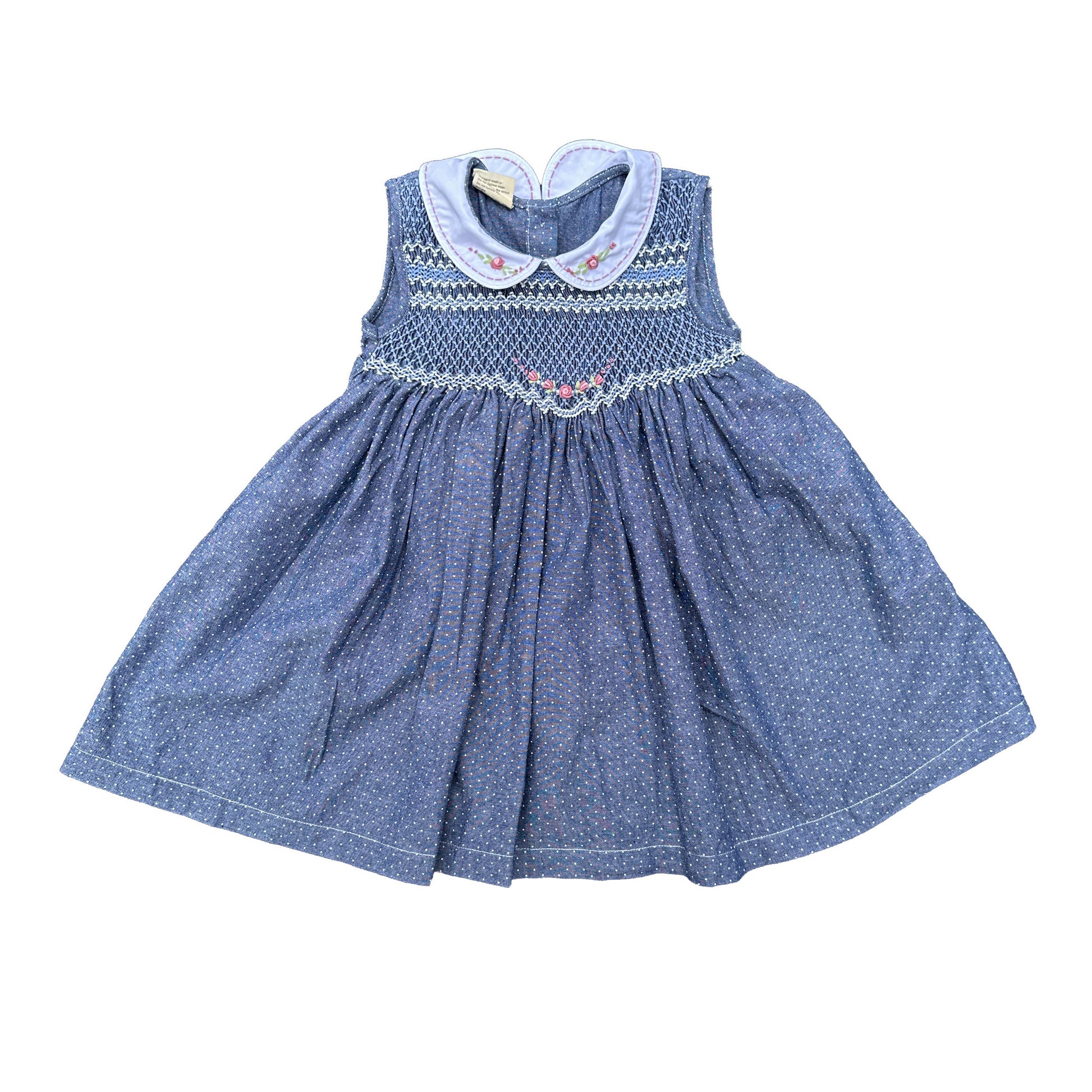 Just a beautiful classic smocked dress made of vintage navy fabric. It has peter pan collar and hand smocking around the chess. Very comfortable, suitable for everyday wear as well as formal occasions.