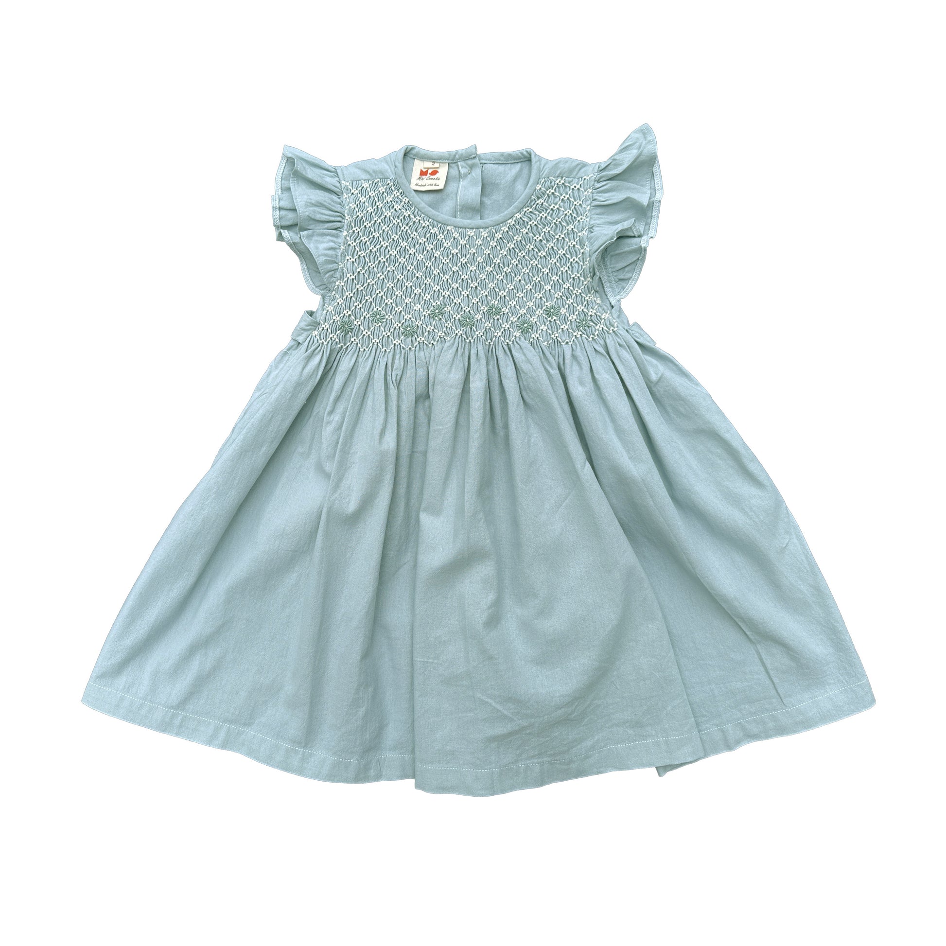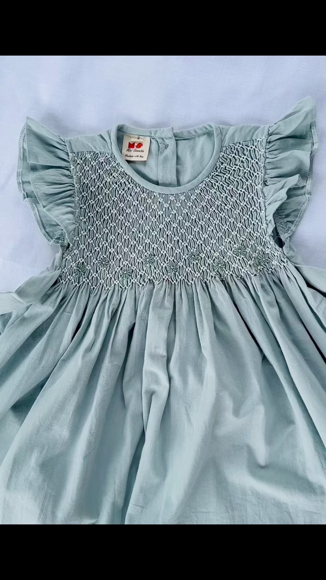 The Pastel Mint Smocked Dress embodies the essence of springtime freshness and effortless charm. It has deliciated hand smock from shoulder to chess, suitable for both formal and casual occasions.