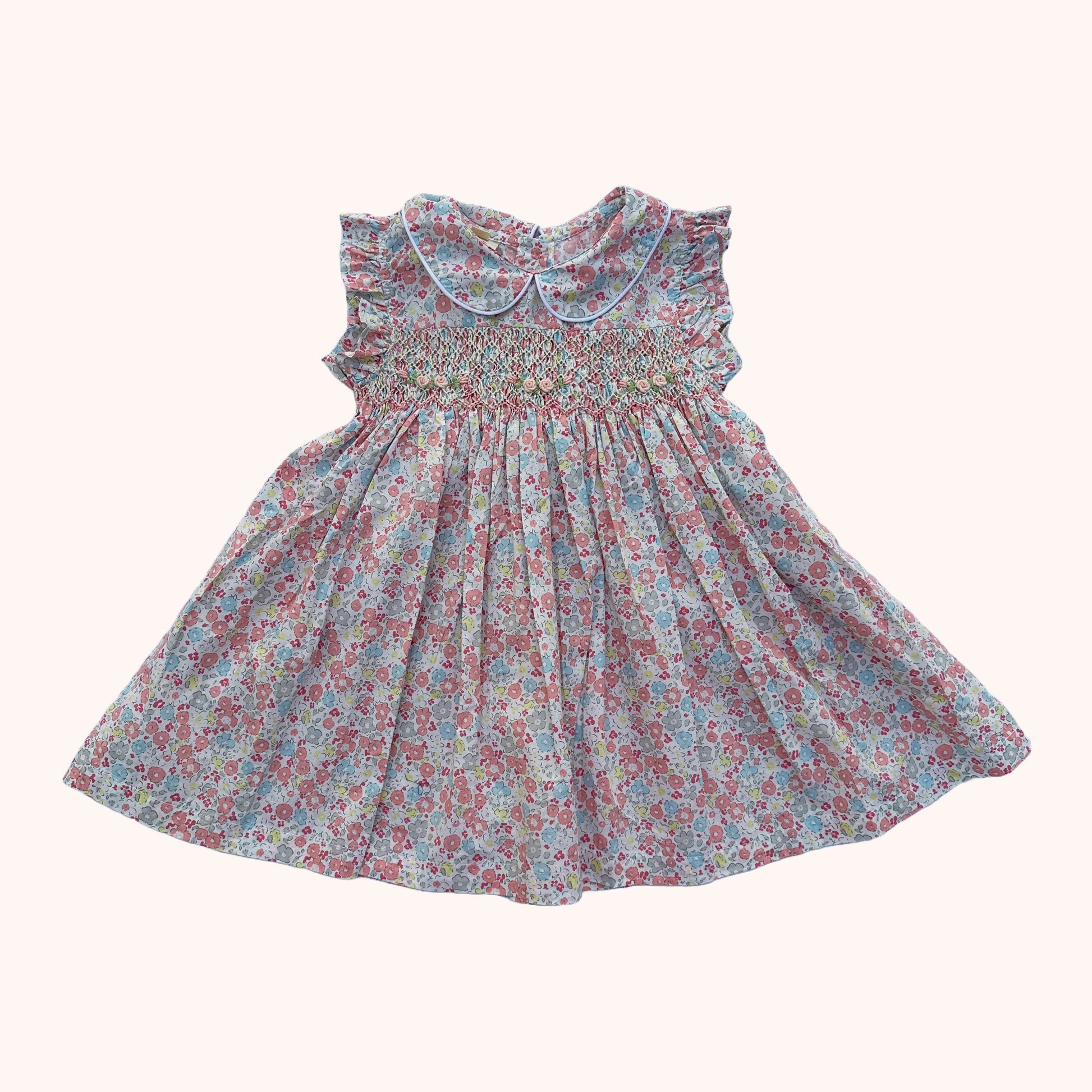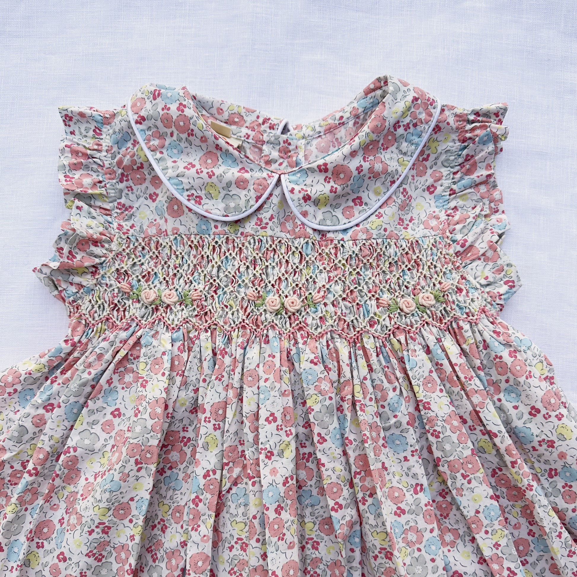 The Pastel Petals Smocked Dress is made from soft, breathable cotton with a gentle pastel floral print. Featuring short sleeves and classic smocking across the bodice, it offers comfort and simple, timeless charm - perfect for casual or special occasions.