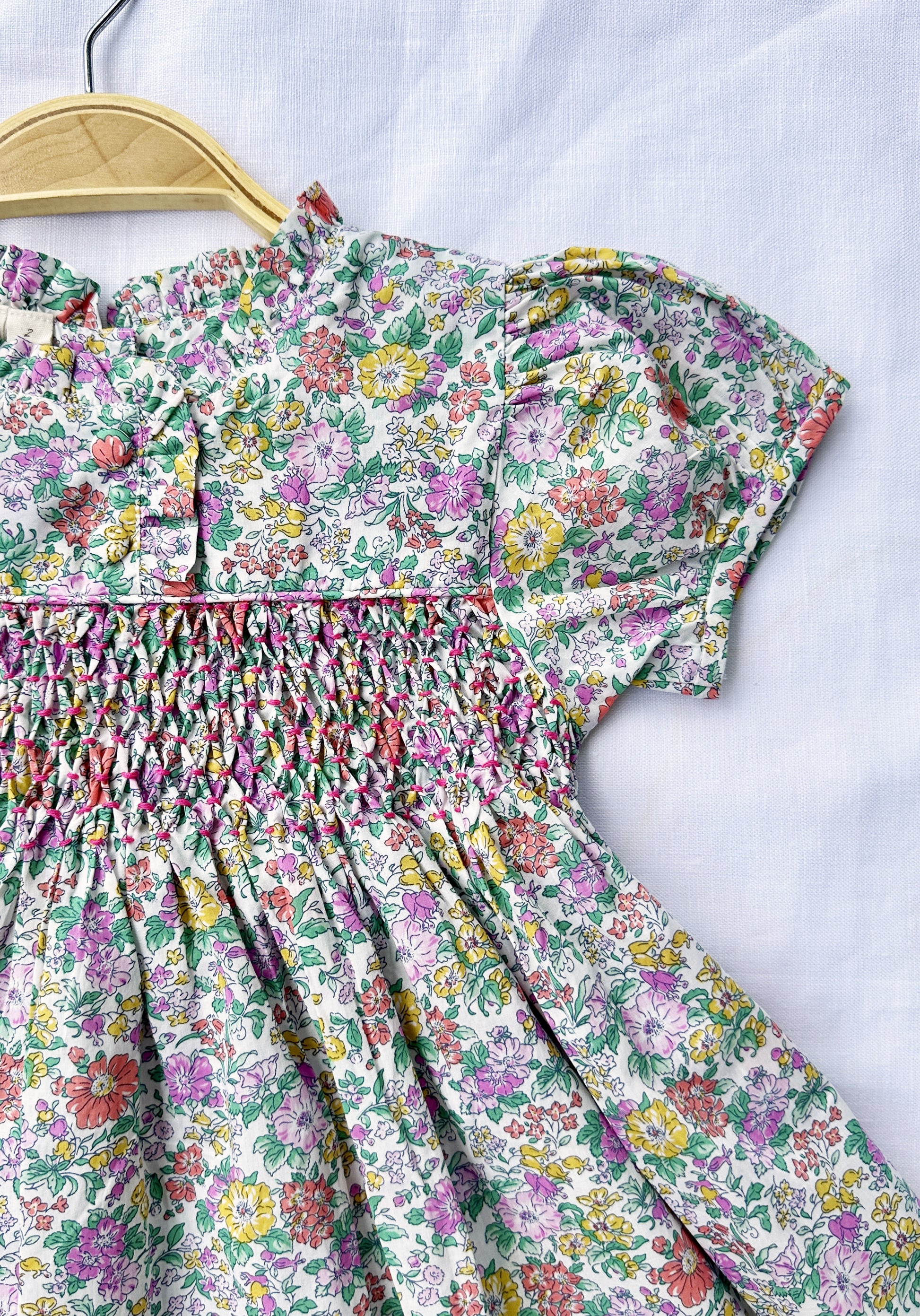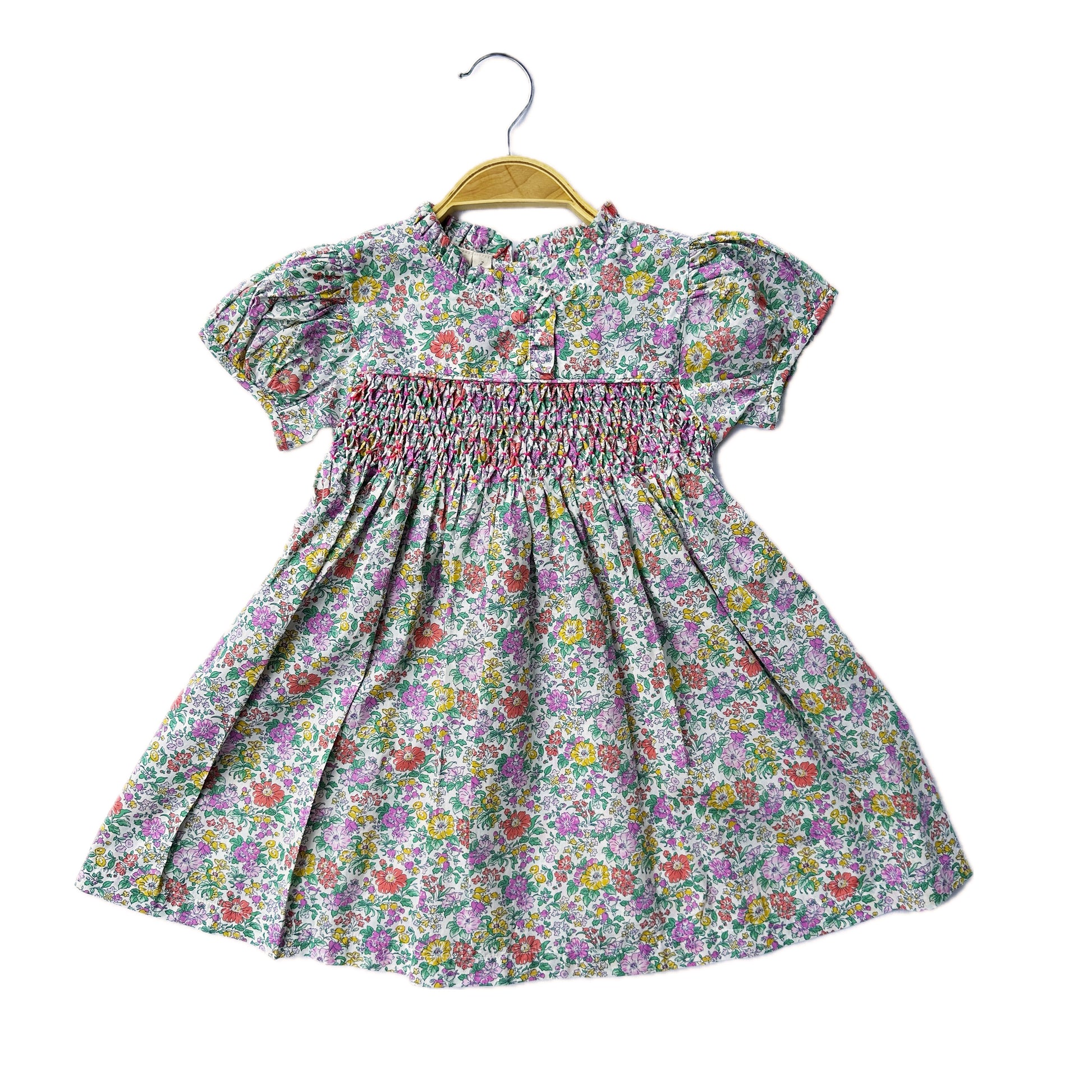 Let your little one explore in style with our Petite Meadow Smocked Dress! This lovely dress is made of 100% soft cotton in little floral fabric, hand smock and embroidered around the chest. Beautiful and elegant. Comfortable, perfect for everyday wear as well as formal occasion.