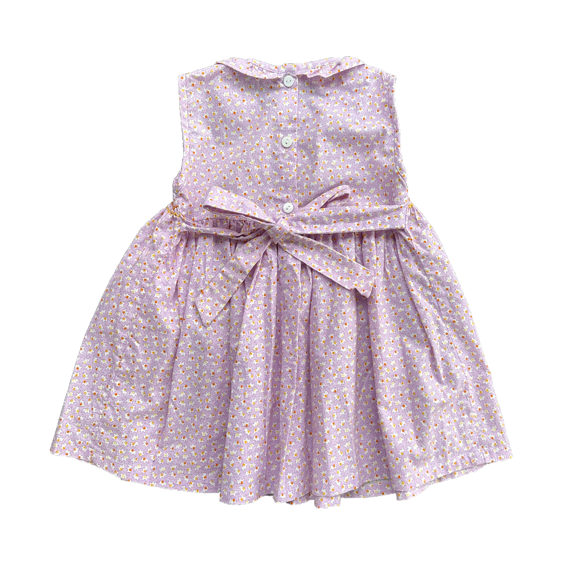 This lovely dress is perfect for any young girl who wants to feel stylish and comfortable. The delicate smocking on the top of the dress adds a touch of elegance, while the playful purple color and cute printed elephant is sure to bring a smile to her face. Whether it's for a special occasion or just a day out with family and friends, this dress is sure to be a favorite in any girl's wardrobe.