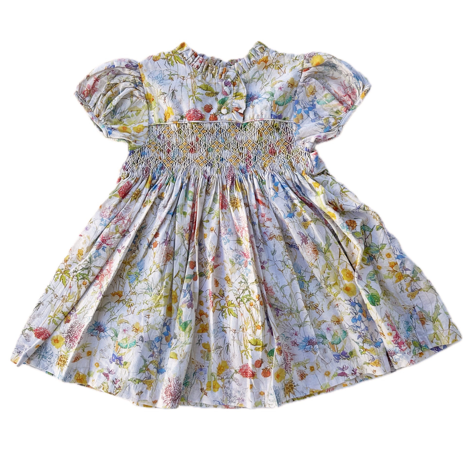 The Rainbow Flora Smock Dress is made from soft, breathable cotton with a colorful floral print. It features classic smocking across the bodice and a comfortable short-sleeve fit for easy all-day wear. Perfect for sunny days, playtime, and casual outings.
