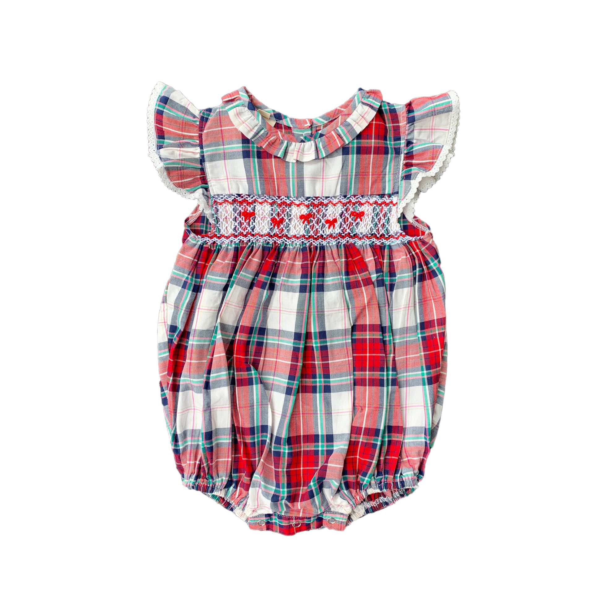 This lovely red checked smocked romper is made from high quality cotton with delicate hand smocked and embroidery. It is perfect for Christmas and everyday wear as well. It is a truly beautiful handmade romper.