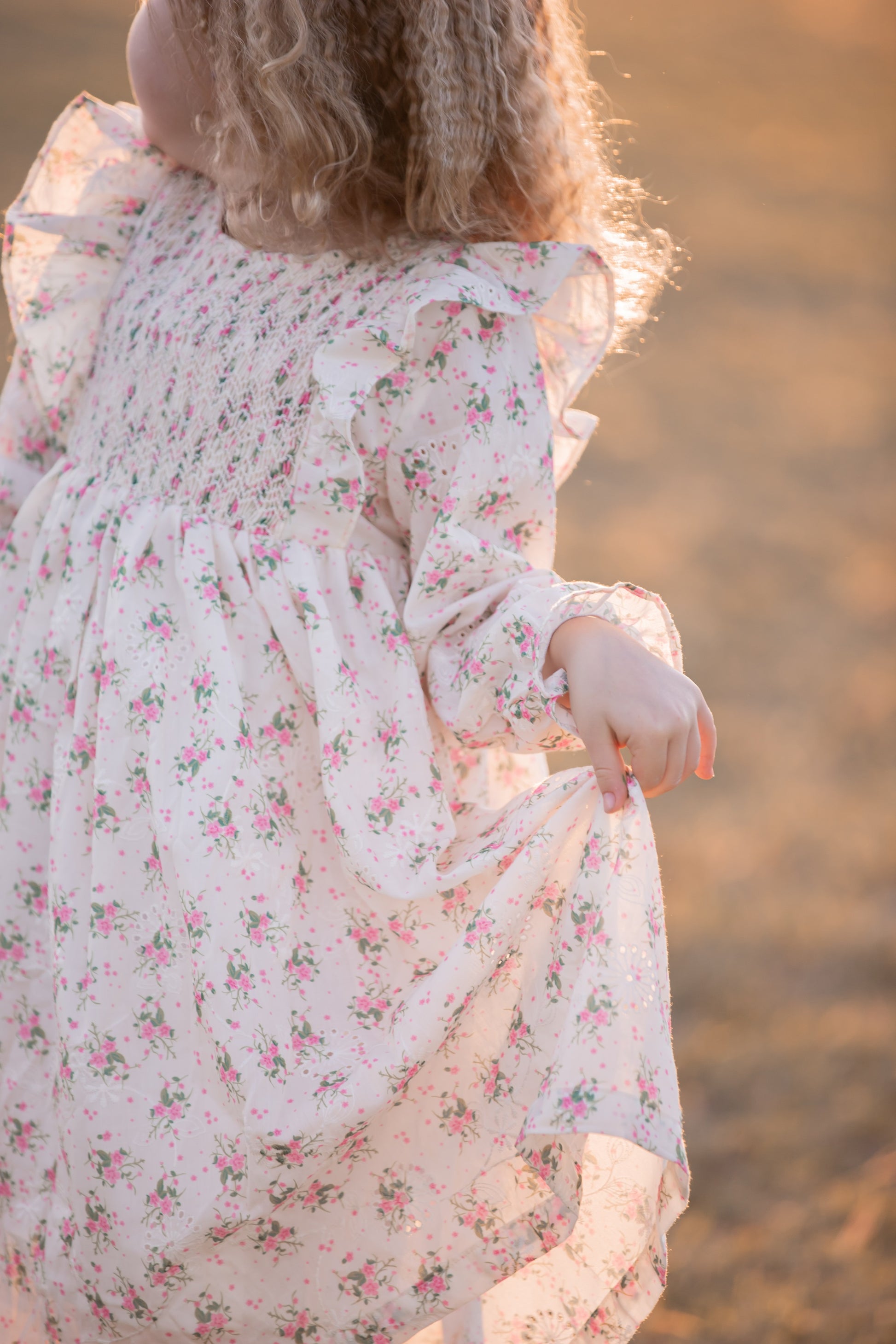 Introducing the timeless elegance with our Rosy Blush smocked dress. Crafted with meticulous care and attention to detail, each dress is lovingly smocked by skilled artisans. The fabric is soft, very comfortable, suitable for everyday wear as well as formal occasions.