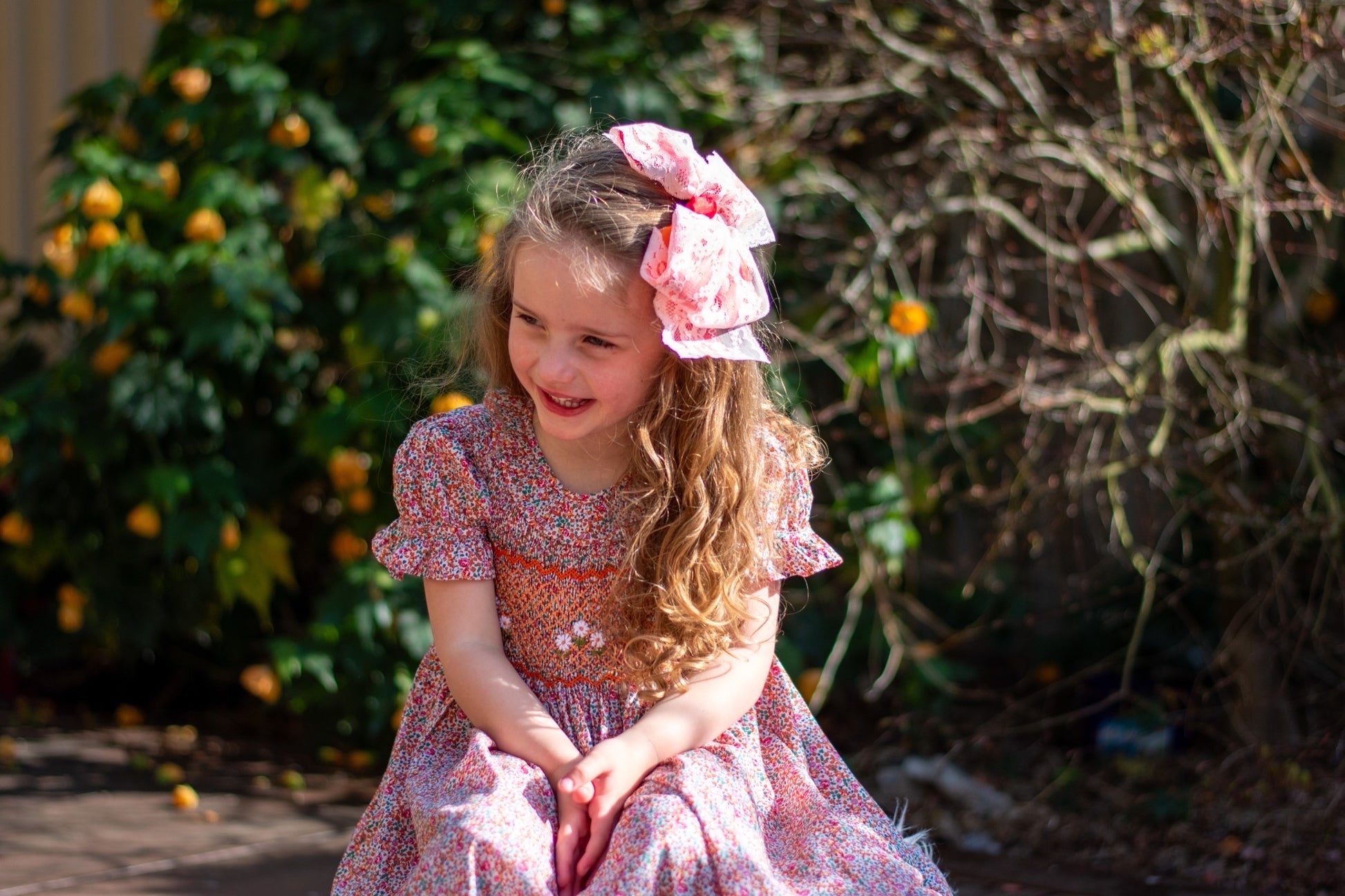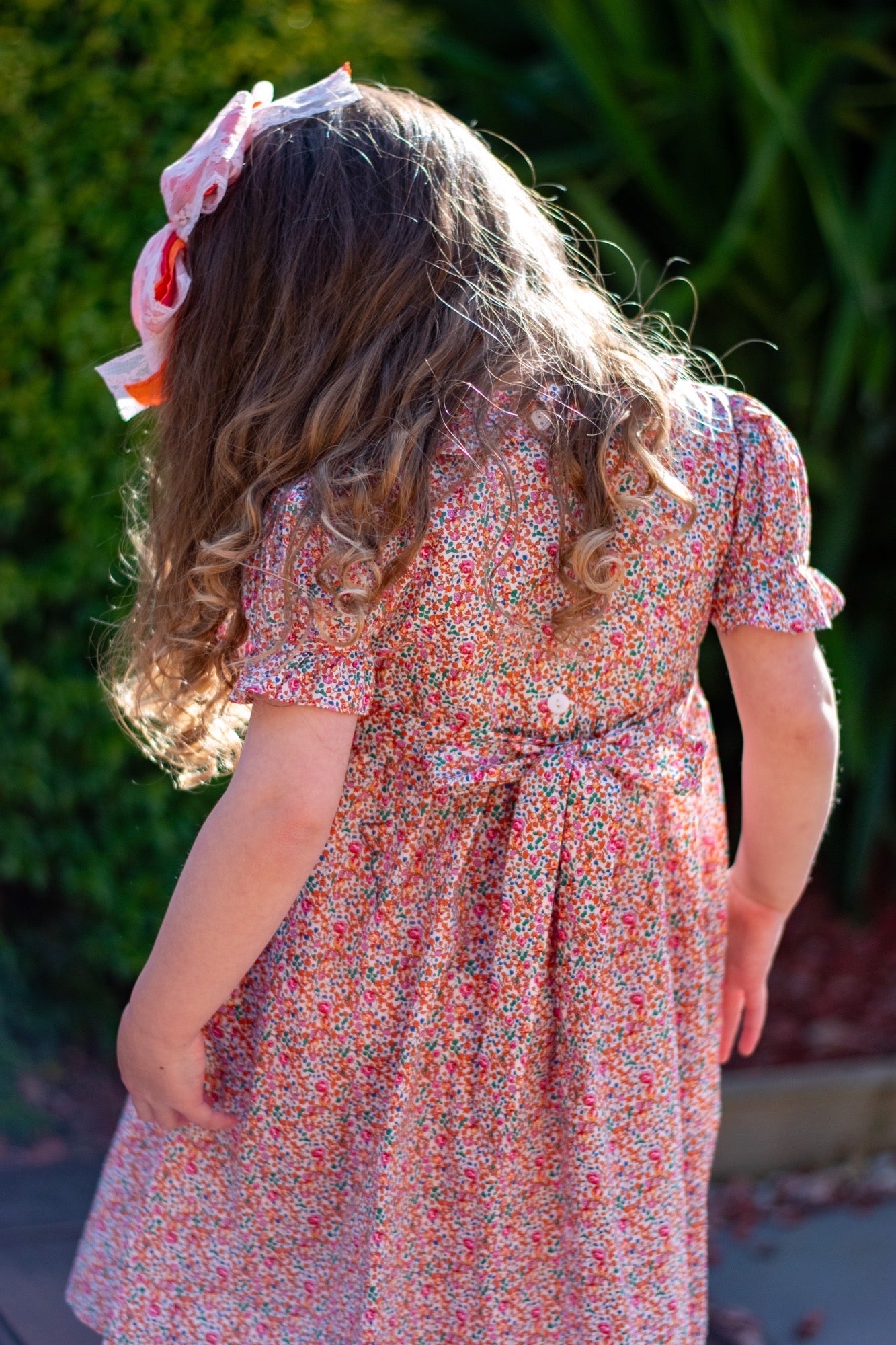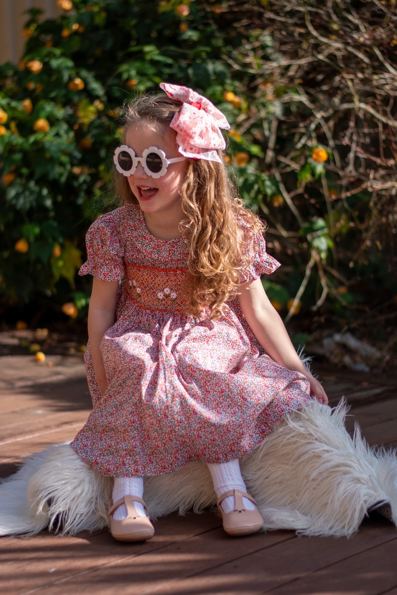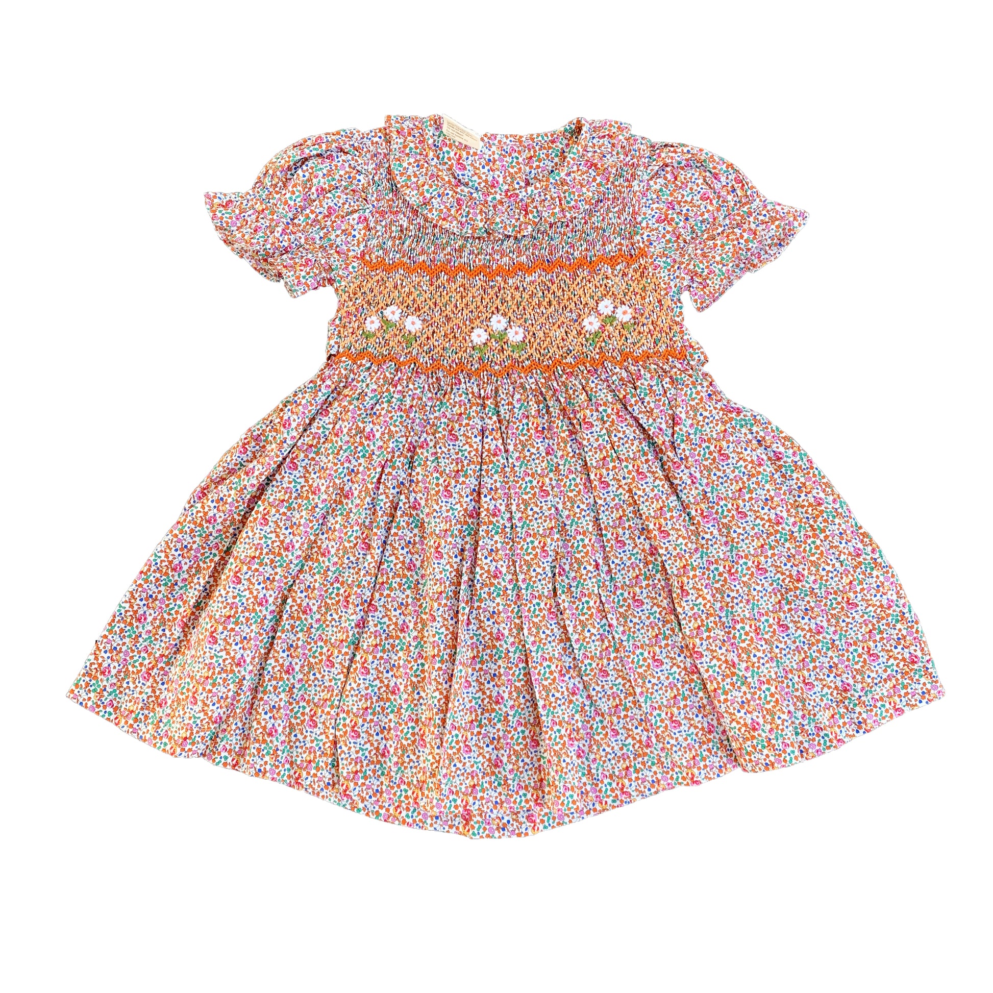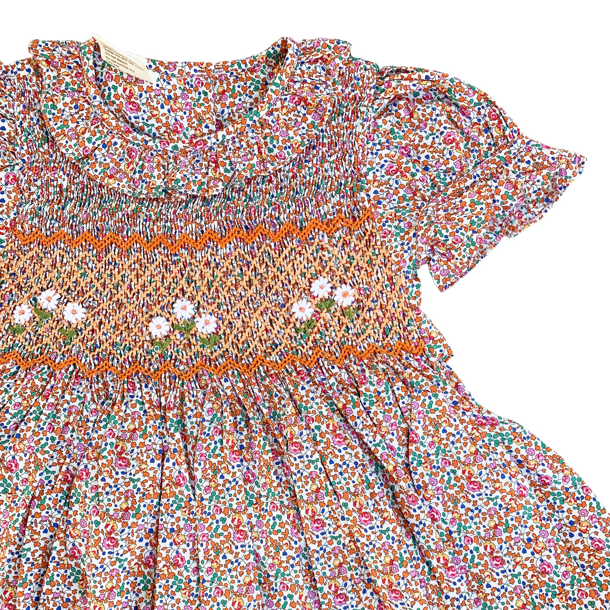 This is simply a gorgeous dress! It is made of cotton, short sleeves, with very detail hand smock and embroidery.