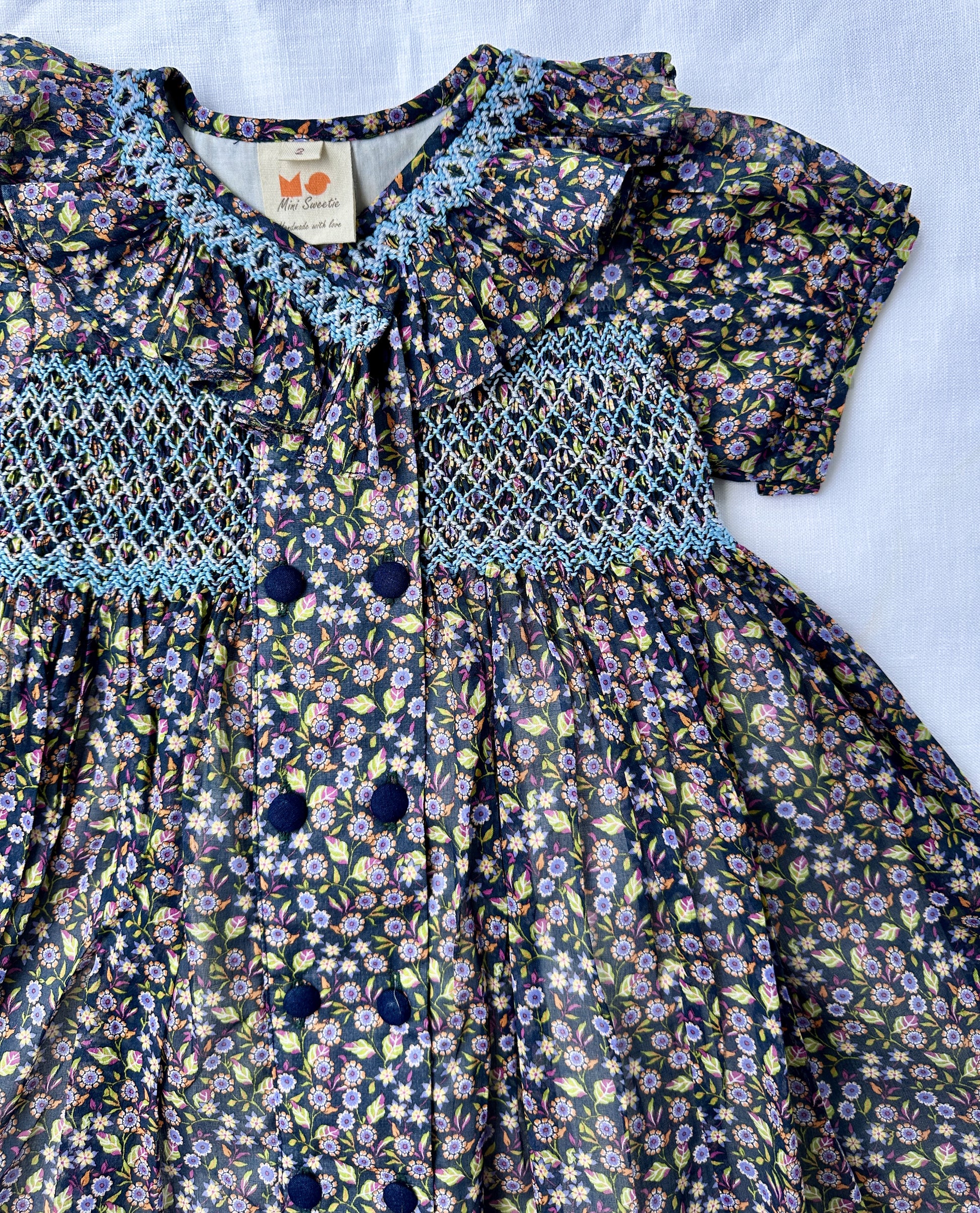 Let your little star shine in our Twilight Petal Smocked Dress! With its dreamy floral design in soft twilight hues and intricate smocked around the neck and the chest, this dress is perfect for magical moments and everyday adventures.